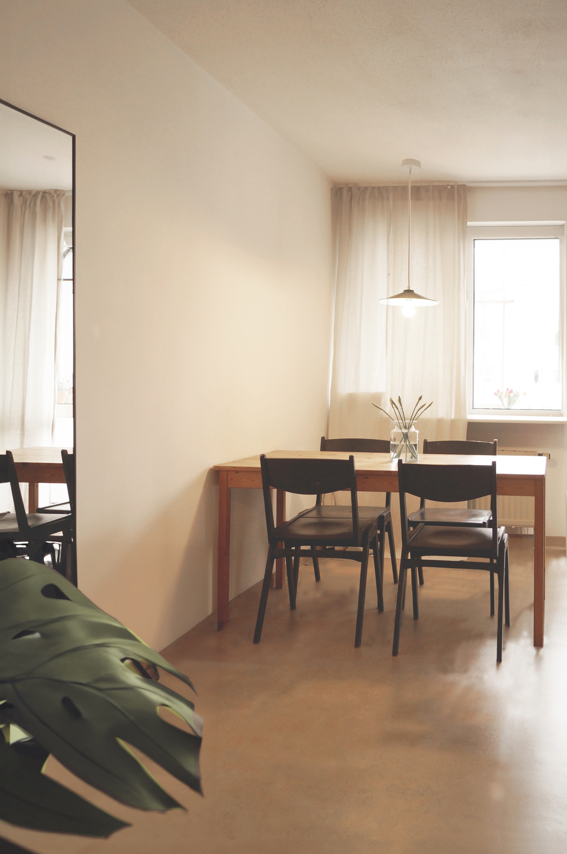 Bestandsmöbel wurden aufgewertet und neu arrangiert, sodass mit kleinem Budget und bewusstem Materialeinsatz ein atmosphärischer Wohnraum entsteht.